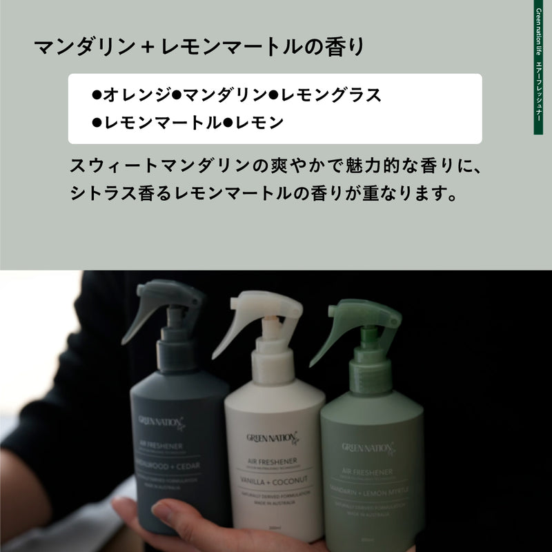 オレンジ、マンダリン、レモングラス、レモンマートル、レモンが調和し、爽やかなマンダリンの香りとシトラス香るレモンマートルが広がります。