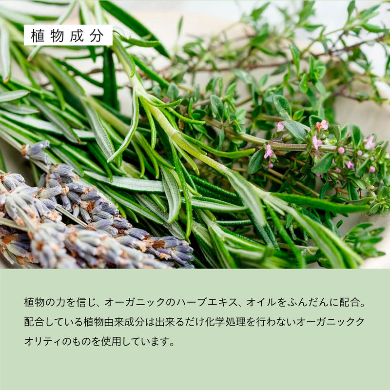 ロングヘアや細く絡まりやすい子供の髪もサラサラ、つややかに仕上げ、枝毛、切れ毛を防ぎます。ザクロのエキスとブロッコリ―の種のオイルを配合し櫛どおりもなめらかに。乾燥しやすい頭皮にもお使いいただけます。ヴァーベナの香りも爽やか。
