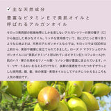 - アルガンオイル:モロッコ南西部の乾燥地帯にのみ生息するアルガンツリーの種子から抽出した希少なオイル。ビタミンE(トコフェロール)やリノール酸・リノレン酸を豊富に含み、肌にハリ・ツヤ・うるおいを与えます。